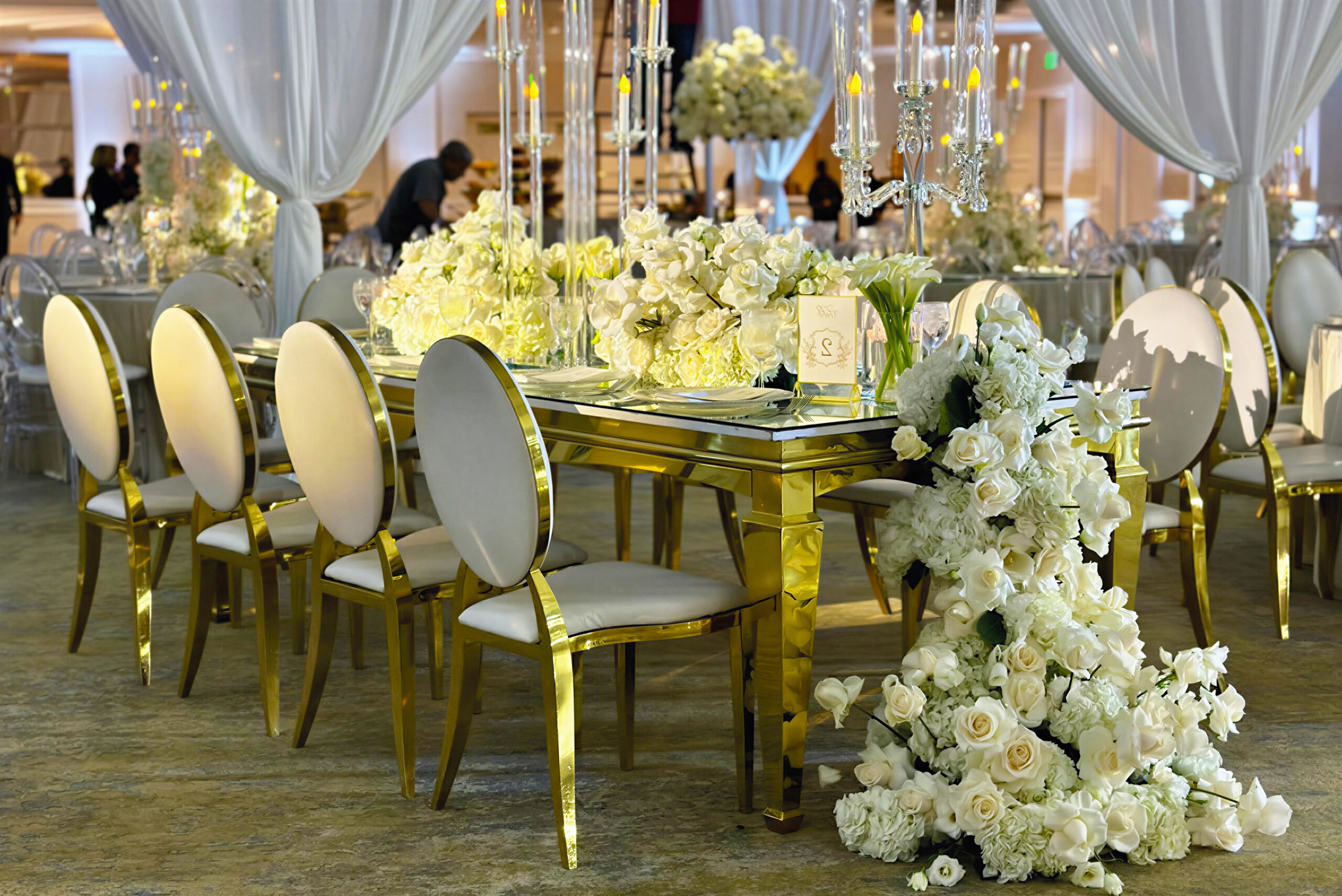 Discover a complete range of glassware and tableware options, including elegant wine and cocktail glasses, dinner plates, stylish chargers, and flatware.